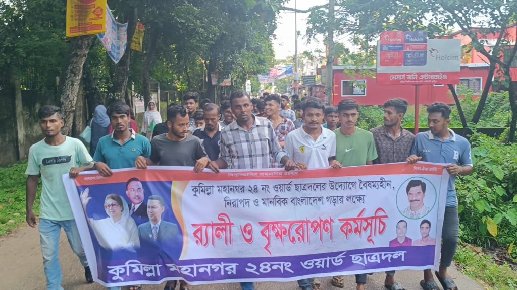 কুমিল্লা মহানগর ২৪ নং ওয়ার্ড ছাত্রদলের উদ্যোগে বৈষম্যহীন, নিরাপদ ও মানবিক বাংলাদেশ গড়ার লক্ষ্যে র‍্যালী ও বৃক্ষরোপণ কর্মসূচি পালন করা হয়েছে।